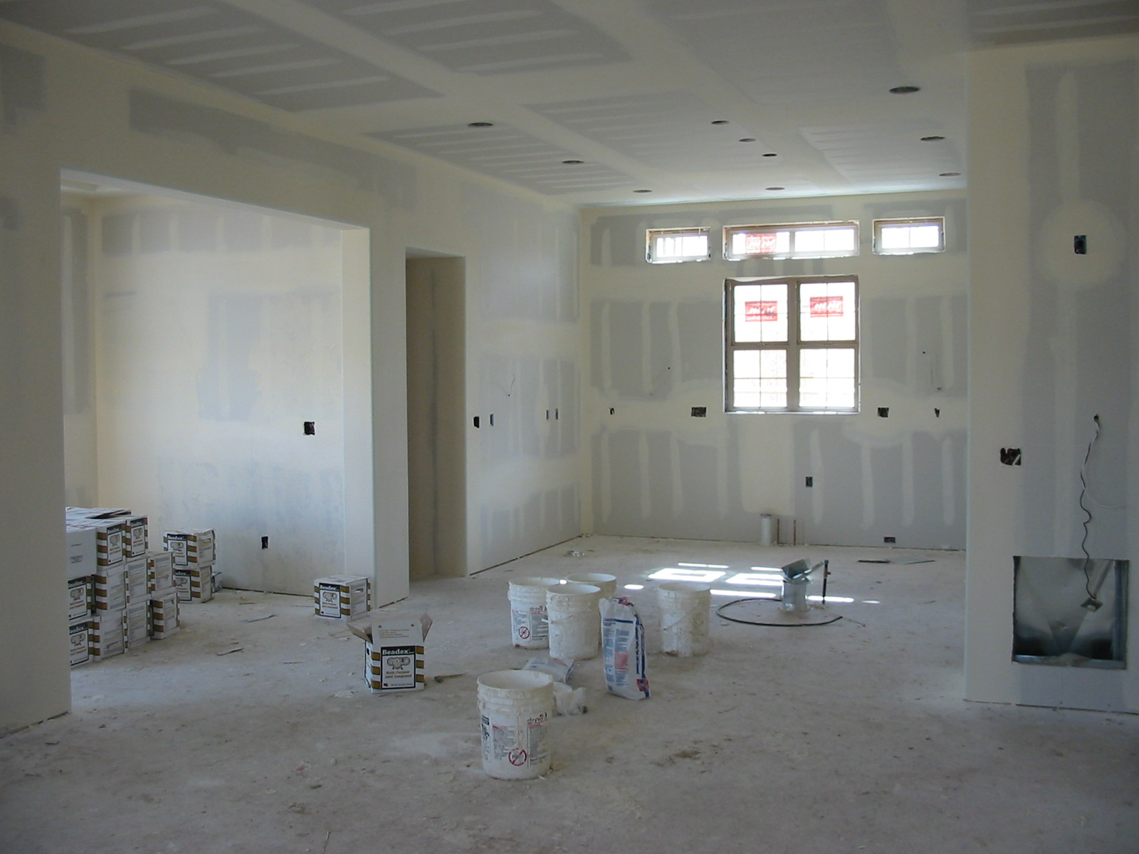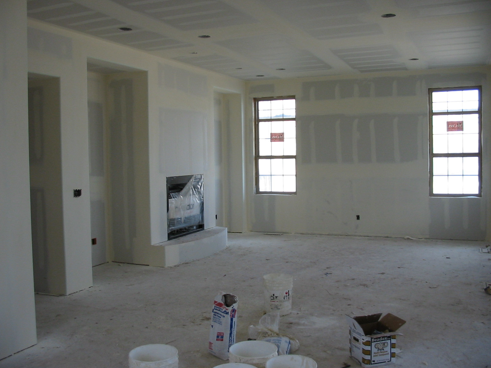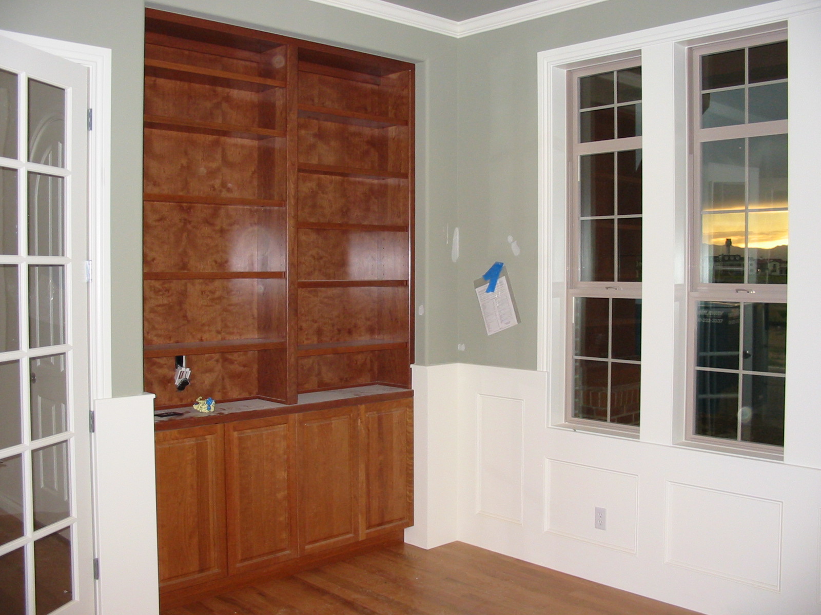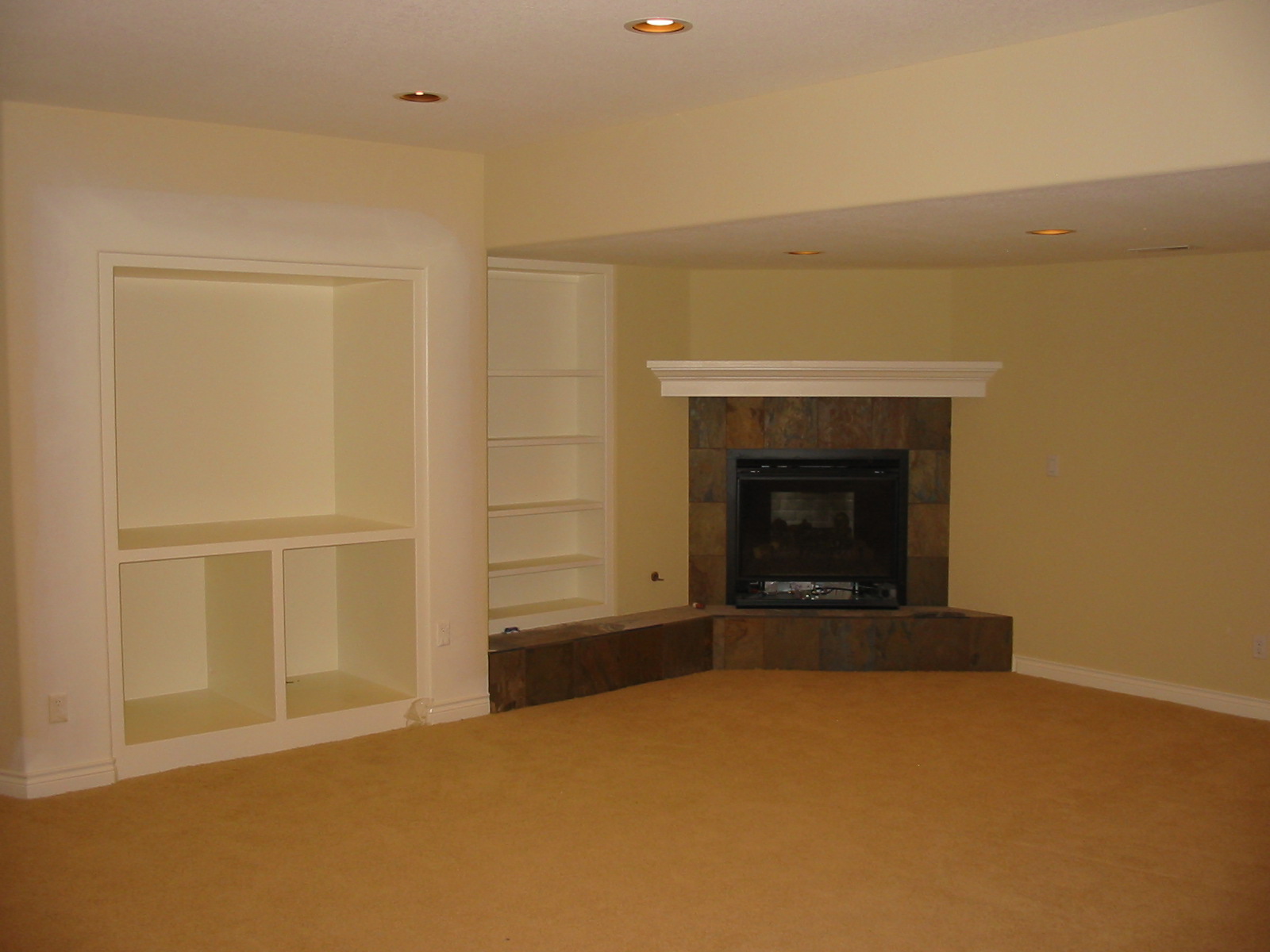 The trim is up throughout the house. Here is the built-ins and mantle for the living room. | |