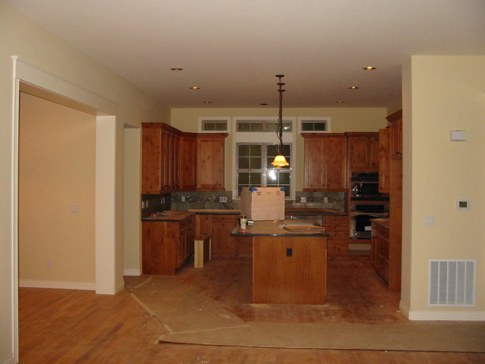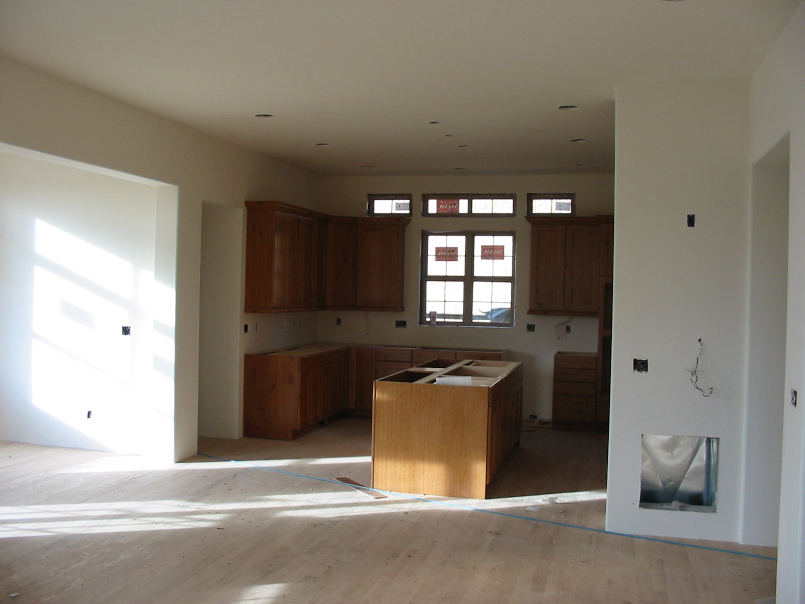 Latest on the kitchen. Hardwood is down and the cabinets are in. | |