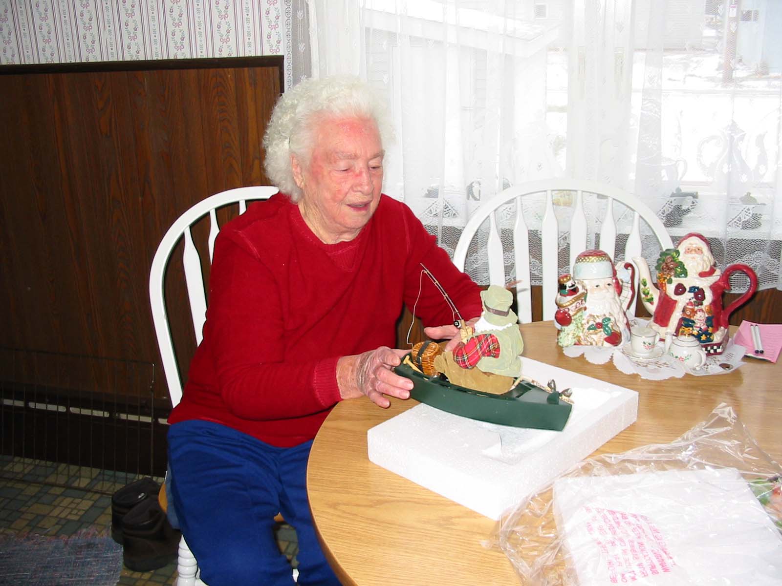 Here's Julie's Grandmother opening a Christmas gift. There were