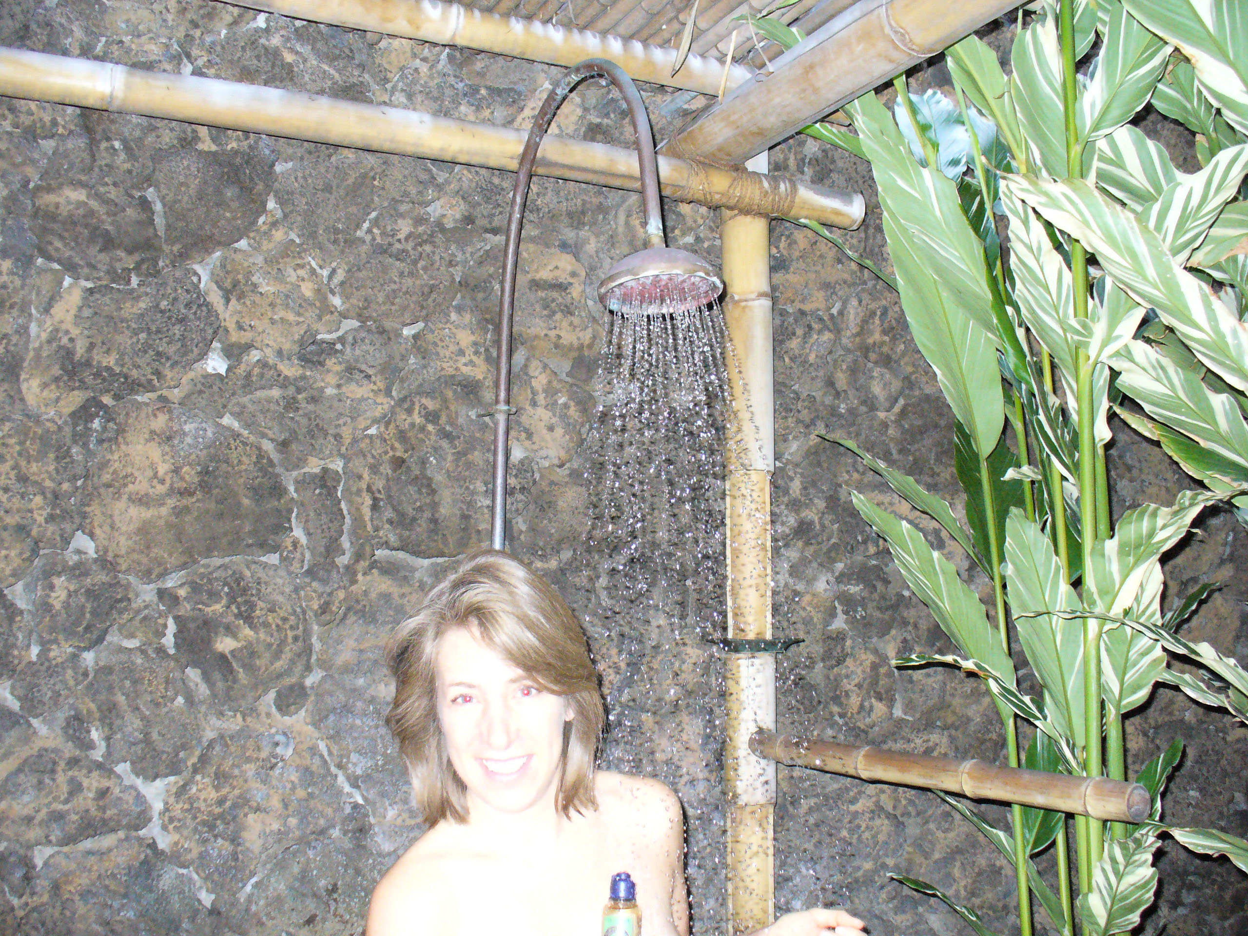 room had an indoor shower and an outdoor shower. The outdoor shower was in a