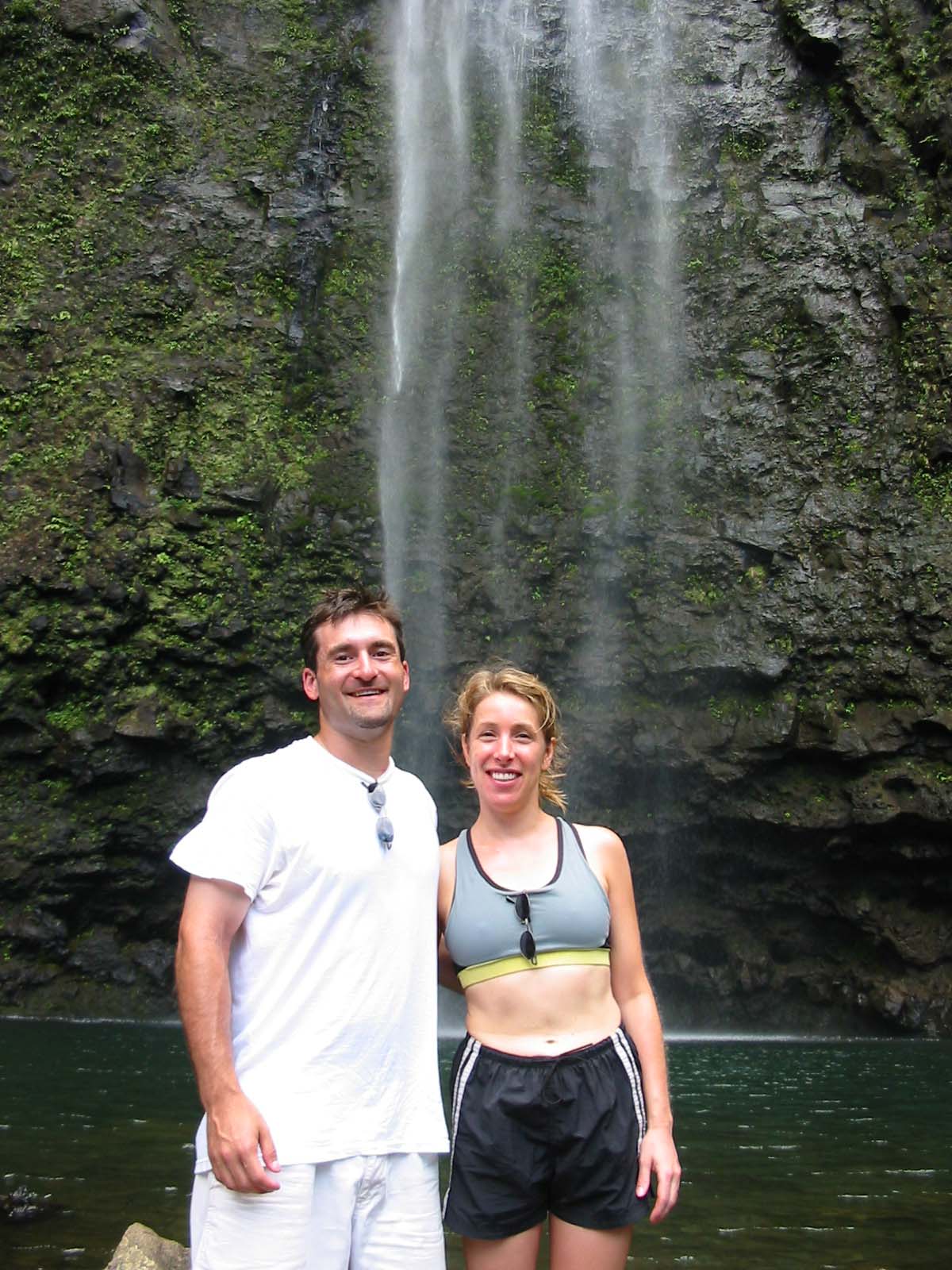 Finally! We pose in front of Hanakapiai Falls. |