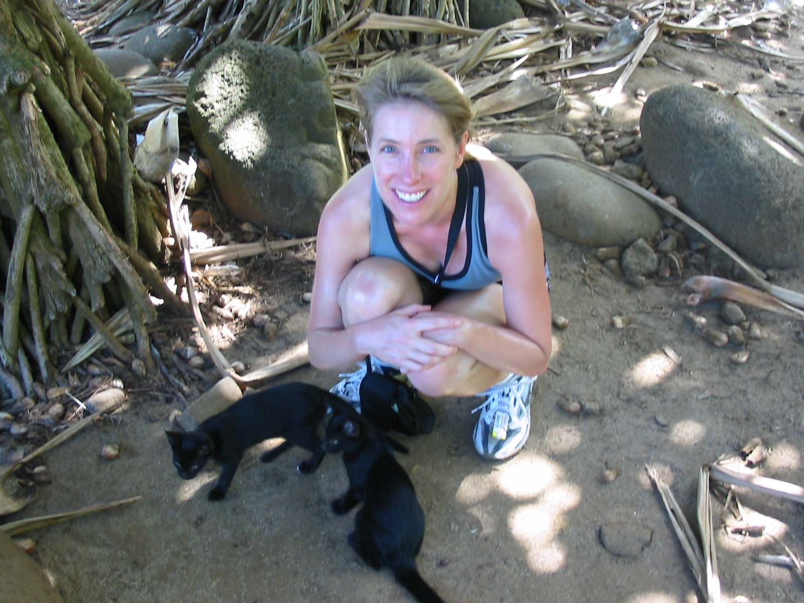 a beach along the trail, Julie befriended some wild kitty cats. |