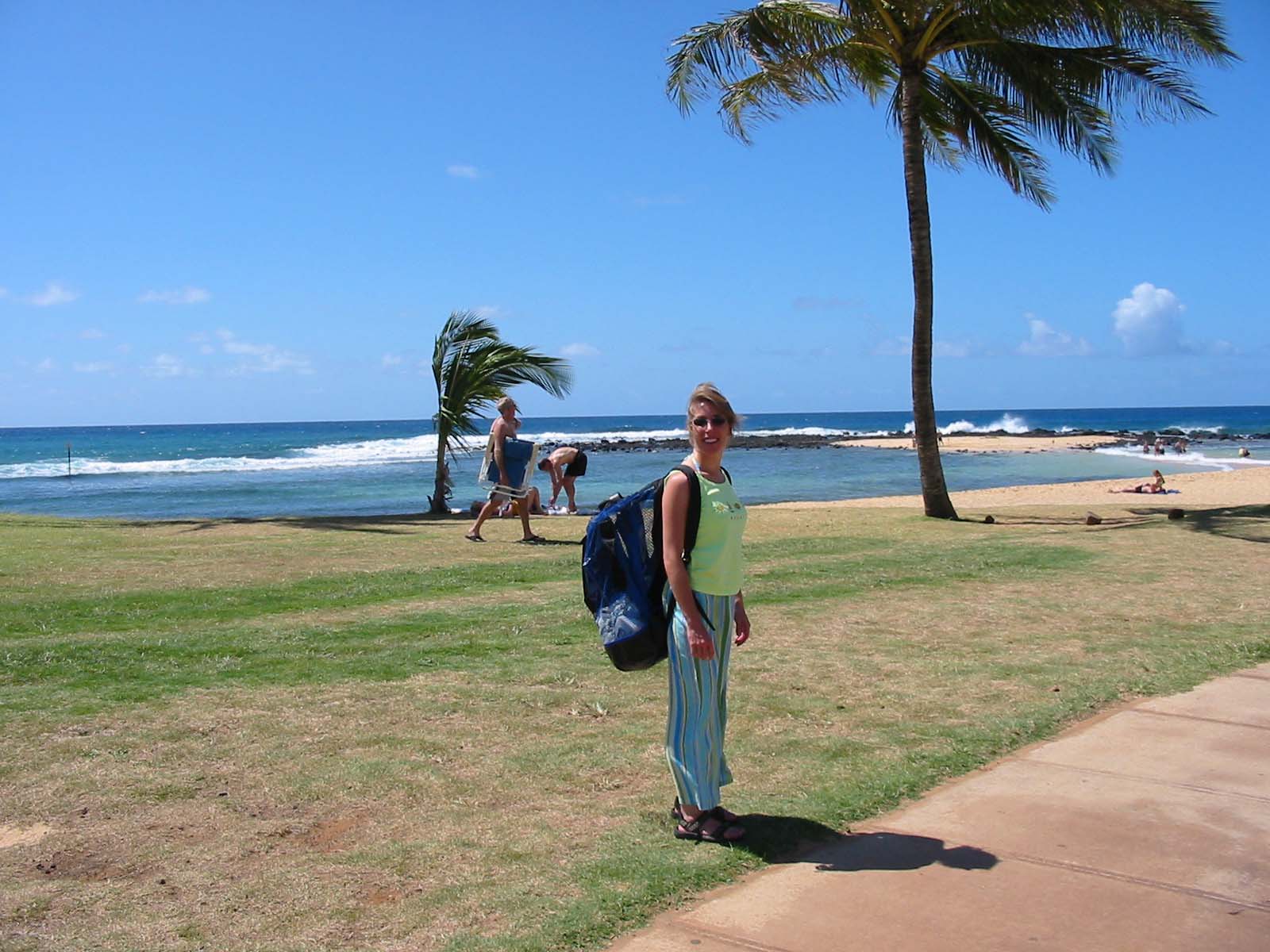 Here is Julie getting ready for some skin diving at Poipu beach. Very