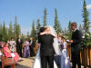 Matt and Jamie give each other a big hug after being pronounced man and