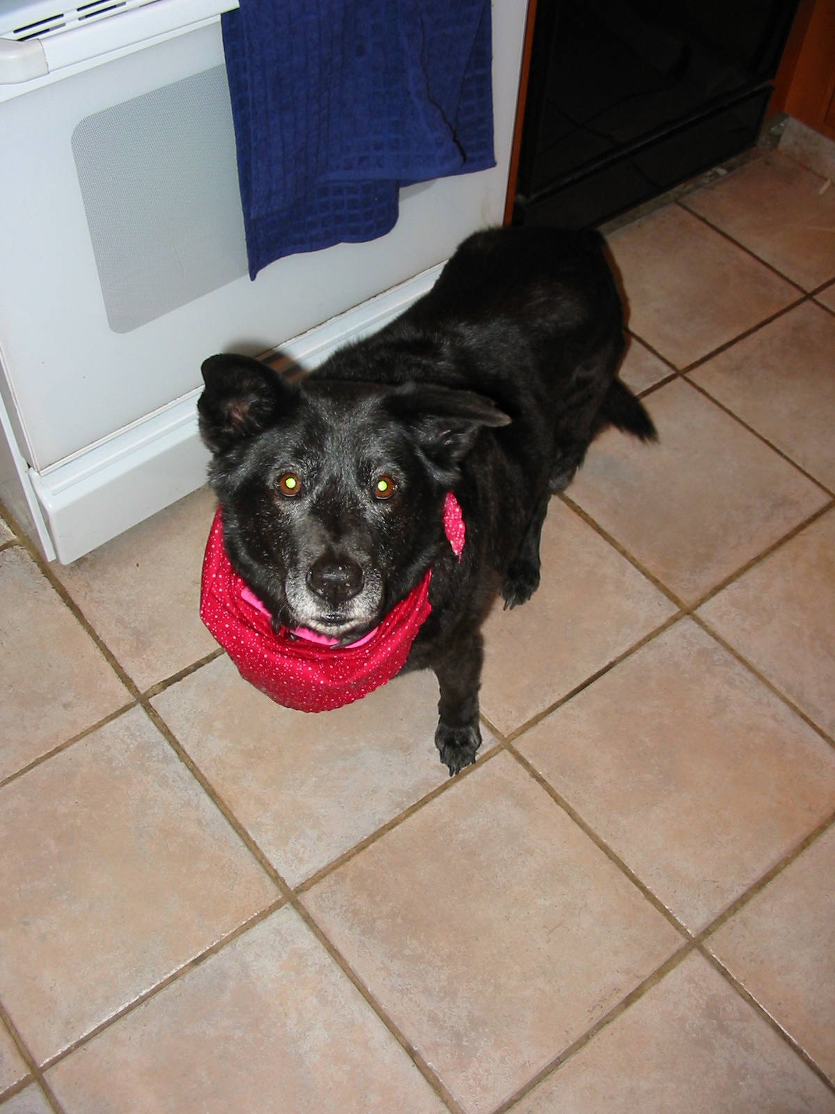 Tasha earlier in 2005, wearing a red bandana our friend Kristin gave her.